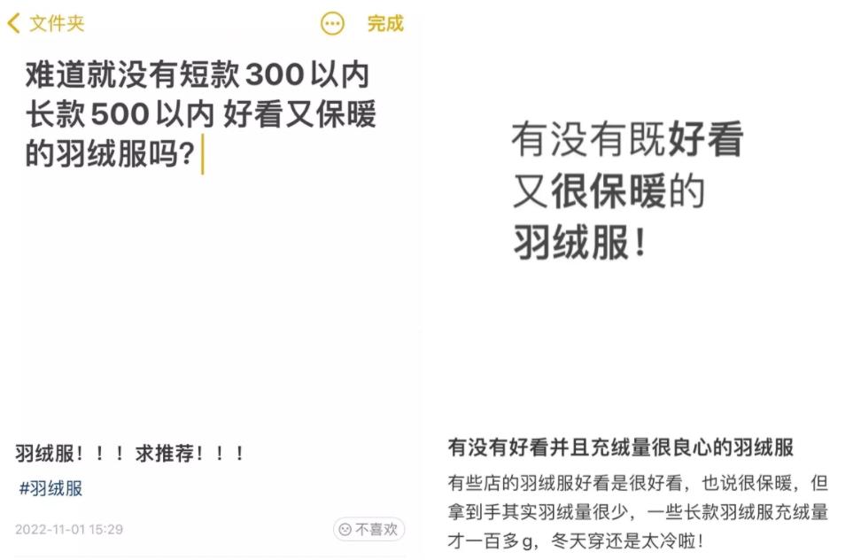 年轻人需要“好看又保暖”的羽绒服,来源 / 小红书