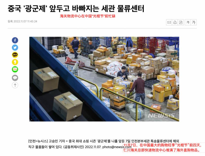 2022年,韩国人第一次经历真正的“双十一爆仓”。由于大量的海外包裹涌入海关,韩国关税厅成立了 6 个专门小组,对各地海关进行支援,在夜间和周末加班,以处理进出口业务。