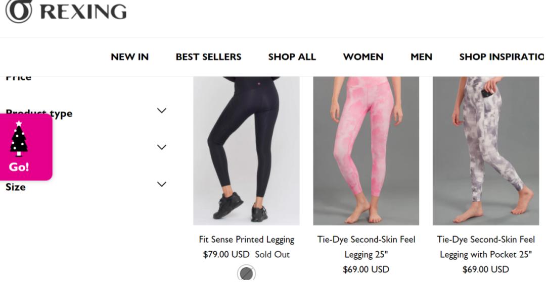 在价格定位上,Rexing 选择中间区段,没有走性价比路线,Rexing 一条 legging 的价格大约在 49-79 美元之间,作为对比,Lululemon 的 leggings 在 98-198 美元,而 Halara 的瑜伽裤在 20-60 美元,Rexing 选择了 2 者之间。