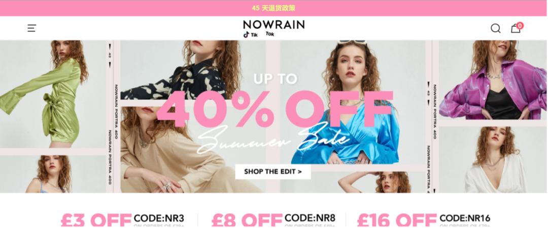 NOWRAIN TikTok 账号为品牌独立站 ,美国站点引流(上)& NOWRAIN 美国站点(下)