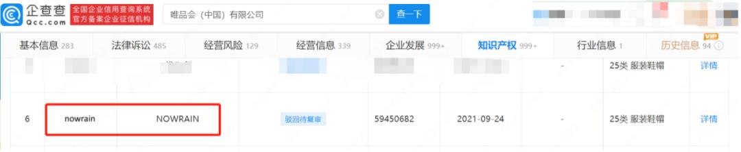 NOWRAIN 商标在唯品会下 ,来源企查查(上)& NOWRAIN 独立站(下)