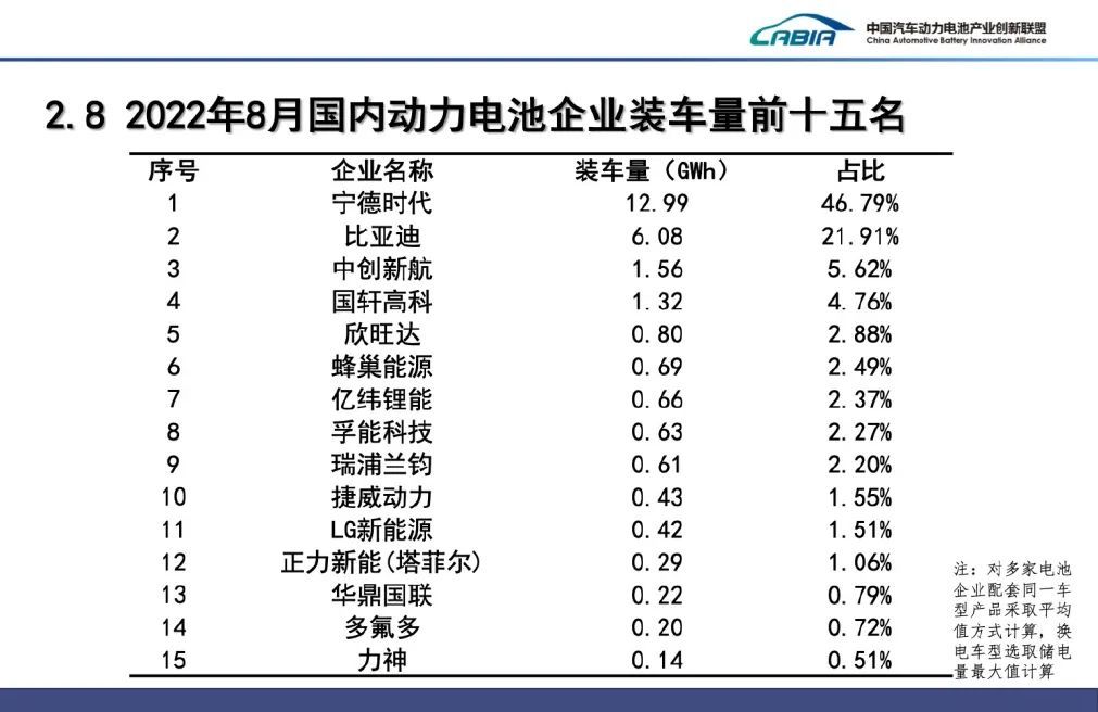 实际上,不仅是瑞浦兰钧,其他动力电池企业国轩高科、欣旺达、蜂巢能源、亿纬锂能等市占率也在5%以下。就连排名第三的中创新航,8月装车量也只有5.62%,而第一名宁德时代市占率达到46.79%,遥遥领先。