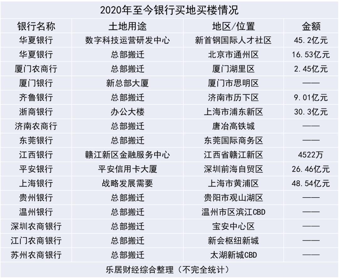 银行正在加紧买地买楼,大多为了办公楼的搬迁或升级。