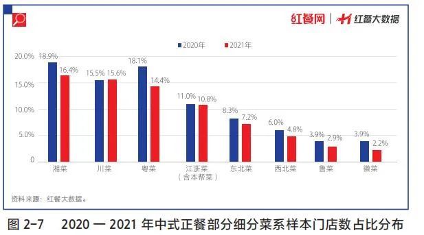 红餐大数据显示,江浙菜是中式正餐中除川、湘、粤菜之外门店数最多的一个细分菜系,占中式正餐总门店数的10.8%。从全国范围来看,江浙菜在其发源地江浙沪地区的门店数占品类总门店数约三成,有七成左右的江浙菜门店分布在江浙沪以外的地区。