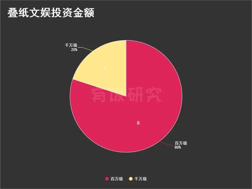 1.2这10起投资多未公布具体投资额,但根据标的公司估值、叠纸持股以及部分工商信息变更情况来看,百万级投资的占比最高,有8次,占比约80%。