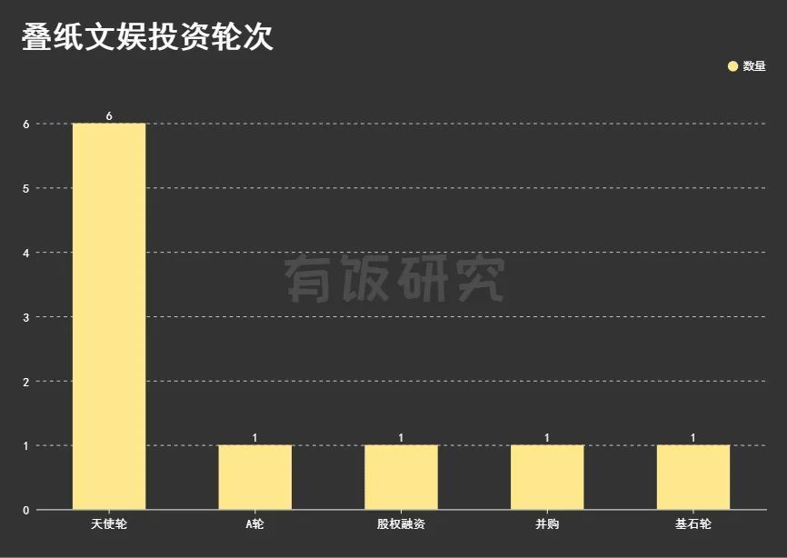 1.3和多数游戏公司相似,叠纸的文娱投资在时间端选择上也以中前期为主,其中占比最高的是天使轮,有6次,A轮、股权融资、并购、基石轮各1次。