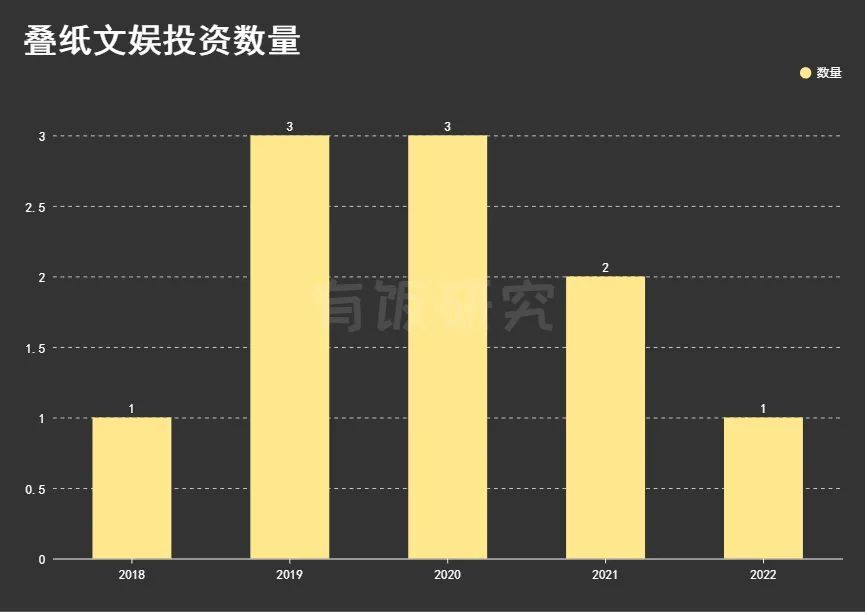 1.1按时间线来看,叠纸的文娱投资主要集中在近4年,其中2019、2020年均有3次,2021年2次,2018年和2022年至今都是1次。