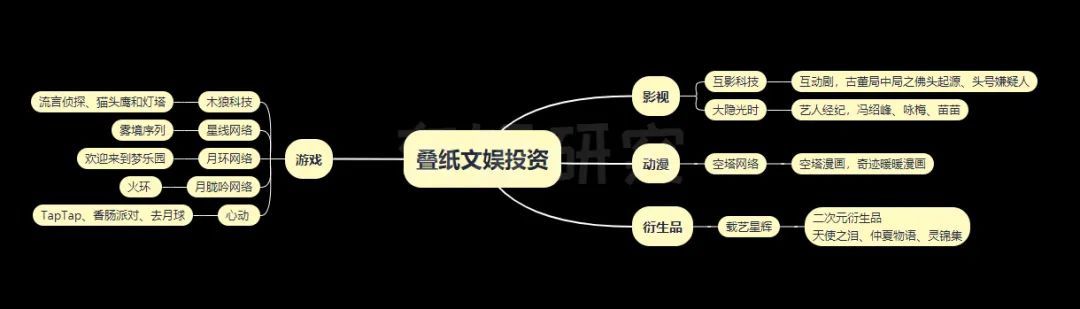 在赛道选择上,叠纸的投资以游戏为核心,围绕游戏,他们也在动漫、影视、衍生品三个领域有所布局。