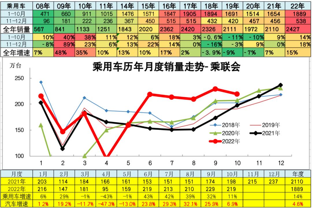 2022年1-10月传统燃油狭义乘用车销量1388万台,较去年同期累计下滑2%; 10月传统燃油狭义乘用车销量152万台,较去年同期下降6%,环比上月下降。