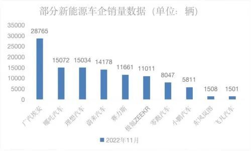 除了比亚迪一骑绝尘外,在已公布销量数据的企业中,广汽埃安排名第二,月销28765辆,造车新势力们的情况也得到缓解,哪吒、理想、蔚来、极客等四家车企,销量也超过10000辆。