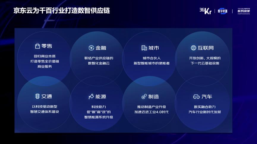 在零售方面,京东携手伊利集团打造智慧牧场,将奶牛饲养到乳品生产全流程数字化。今年伊利携手京东打通了双方的供应链,实现了全渠道一盘货,库存成本下降了8%,运输成本下降了22%,履约交付时间在原来的基础上提高了1天。同时京东还携手像赫利昂、名创优品等众多零售品牌,在数字化供应链方面寻求突破和创新,支持零售企业的业务成长。
