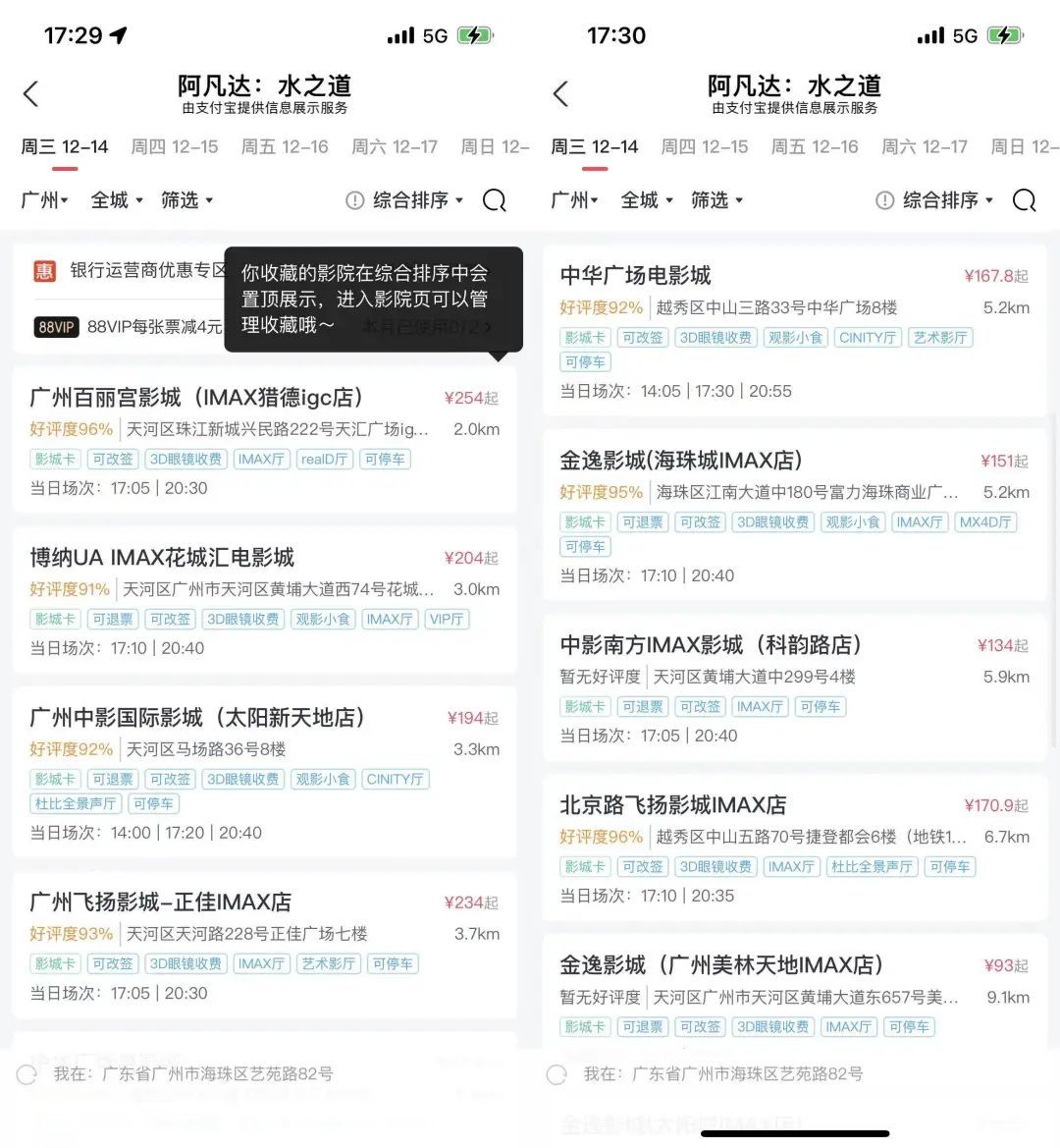市中心那些最新、地段最好的电影院,往往就是把票价卖到 300 块的电影院,但偏僻区域的老电影院依旧可以让你看上《阿凡达 2》,就是可能 IMAX 厅的座位在哪里都不便宜。