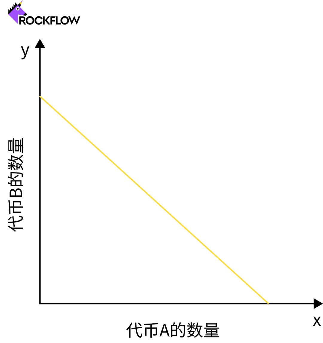 它是零滑动交易的理想选择,但它不能提供无限的流动性。恒定和做市商(CSMM)遵循公式x + y = k,在绘制它时,创建的是一条直线。不幸的是,如果代币之间的链外参考价格不是1:1,那么这种设计允许套利者耗尽其中一种储备资产。这种情况将摧毁流动性池的一方,迫使流动性提供者承受损失,并使得交易者不再有流动性。因此,恒定和做市商(CSMM)并不是一个常见的AMM模型。