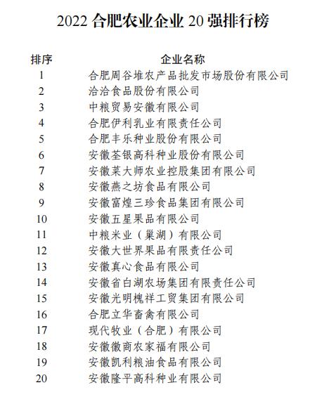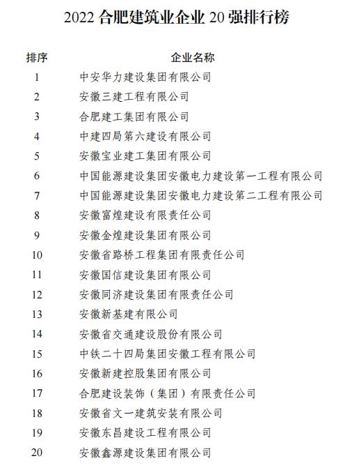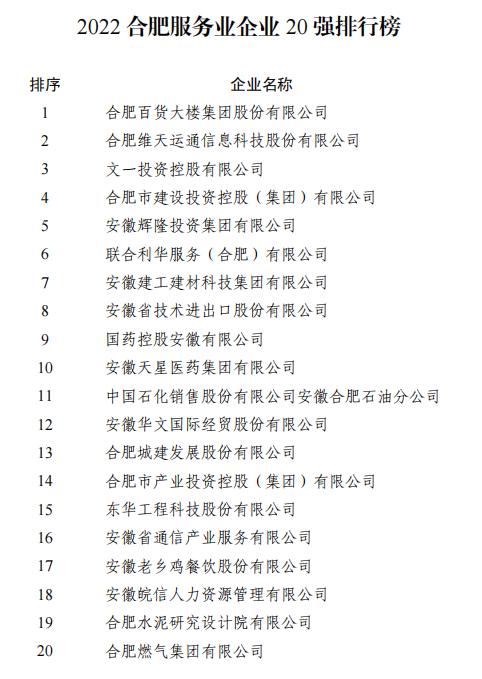 12月8日,2022合肥企业50强、合肥制造业企业30强、合肥服务业企业20强、合肥建筑业企业20强、合肥农业企业20强(排序以2021年度营业收入为准)正式发布。