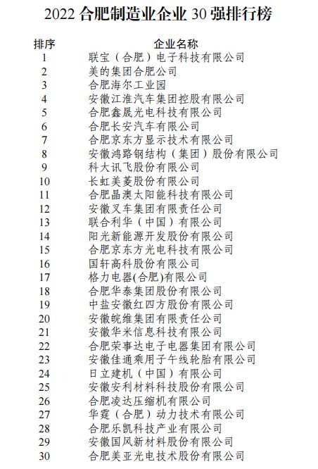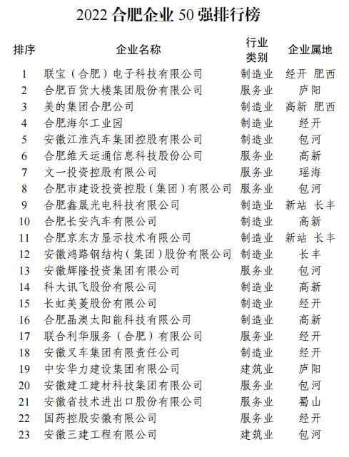 编者按:本文来自合肥市人民政府发布。原标题:《2022合肥企业50强榜单出炉!》,36氪经授权转载。