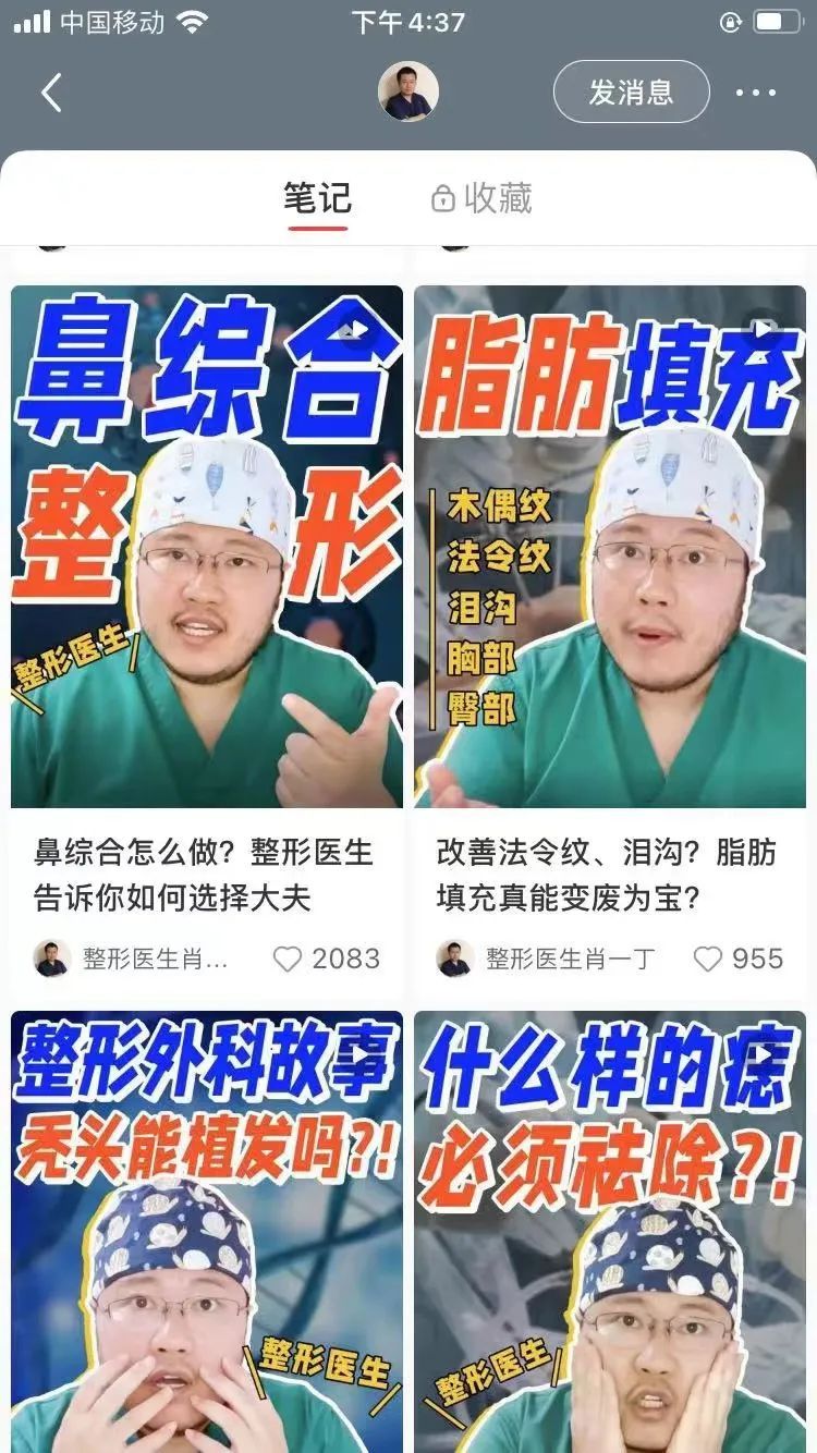 ▲博主“整形医生肖一丁”分享主页截图
