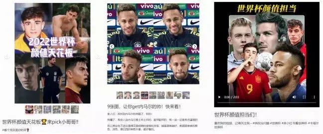 “2022世界杯颜值天花板 来PICK小哥哥!!”“9张图,让你get内马尔的帅”“世界杯颜值担当们”... ...