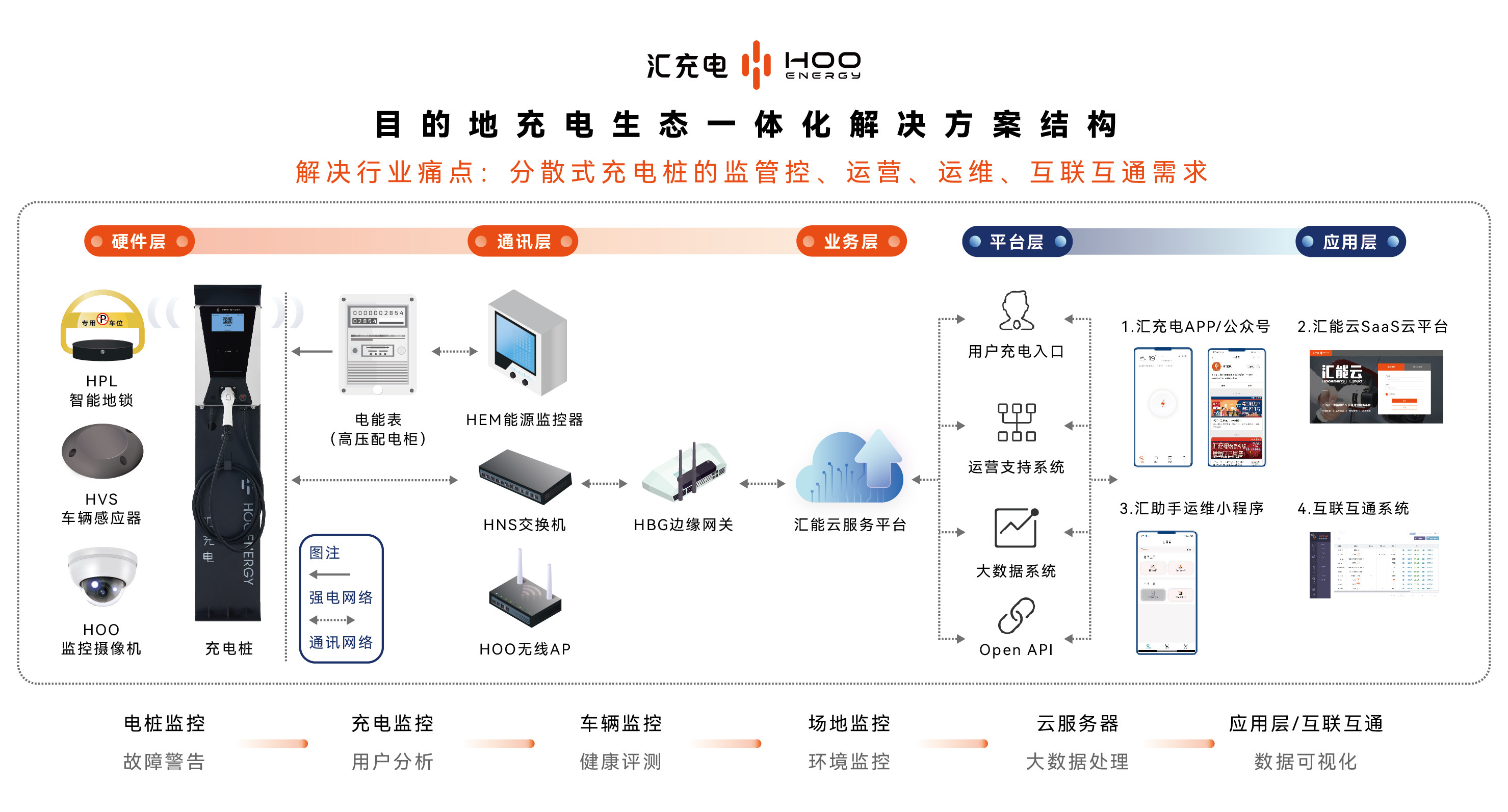 「汇充电」成立于2016年,是一家定位于目的地充电运营的解决方案提供商。区别于类似传统加油站模式的在途充电,目的地充电更具有‘便利性’。车主可以在住宅社区、办公楼区、商业综合体等日常居住、办公、购物、聚会楼宇的停车场内“随停随充”,即时补能。