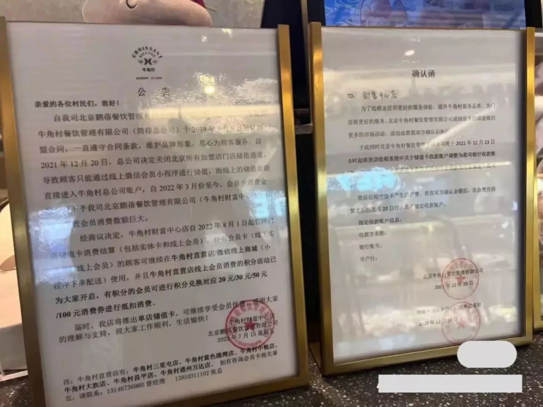 曾经的网红烘焙牛角村,也出现了关店情况。多家直营门店关停、储值卡在加盟店无法使用、还因为违反《中华人民共和国反不正当竞争法》被罚。