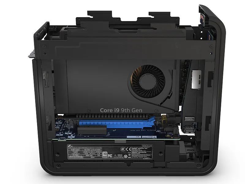 NUC 也能内置独立显卡,虽然从体积尺寸上看已经和传统的 NUC 有着相当大的区别,但不可否认的是,他依旧属于模块化的电脑。幻影峡谷整个机身都变得更为扁平,空间变大的同时为 CPU 和 GPU 的散热留下足够的空间。