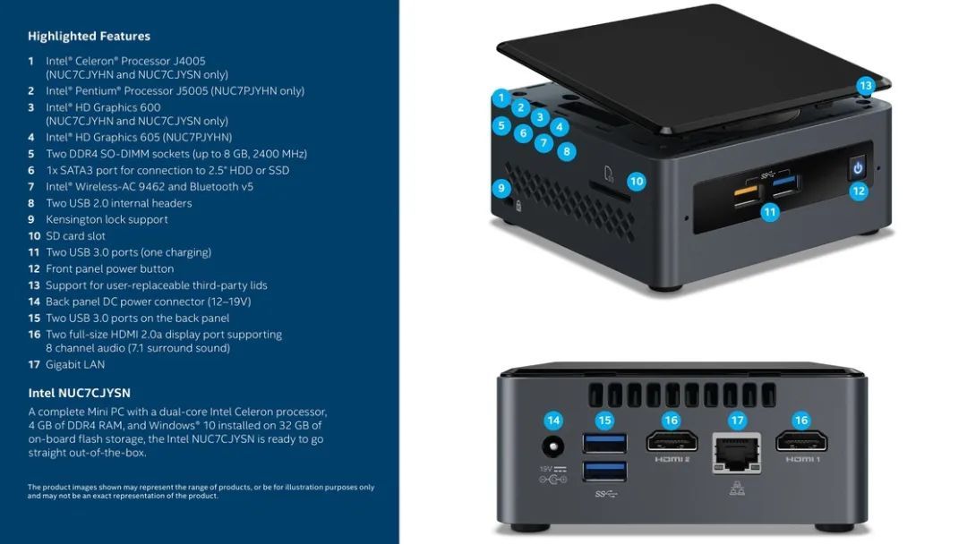 优点:标准 NUC 体积小巧,可扩展配置更全面