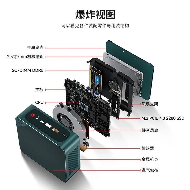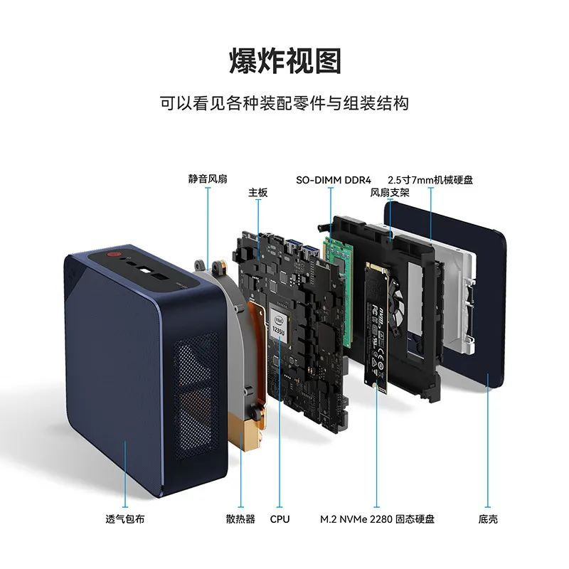 优点:采用低功耗的赛扬 J4005 处理器,内置 SATA3 接口可安装 2.5 英寸笔记本硬盘