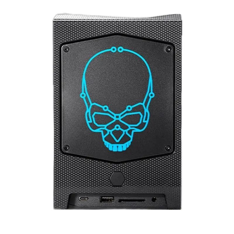 按照常理来说,重度娱乐其实和 NUC 并不沾边,毕竟重度娱乐往往需要全尺寸的独立显卡,甚至处理器也可能需要标压台式机处理器,NUC 狭小的空间似乎无法将高性能的计算元件的潜力发挥出来。不过作为 NUC 标准提出者的 Intel 就推出了名头为 NUC 的重度游戏设备,依旧是模块化的设计,但却保留了传统游戏主机 DIY 的乐趣,比如说我们可以为 NUC 安装一块台式机上的独立显卡。