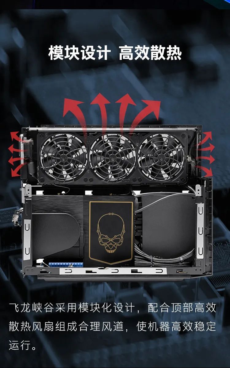 Intel 幽灵峡谷虽然在游戏 NUC 上算是性价比突出,但是依旧存在几个不足,一个是不支持全尺寸显卡,另一个是处理器太旧了。那么这个问题在飞龙峡谷上就可以一并解决,一方面是飞龙峡谷的机箱尺寸为 8 升,支持双卡槽桌面级独立显卡,因此很多更高阶的显卡都可以插进去。另一方面是处理器,采用的是最新的 Intel 第 12 代处理器,可选 i7 或者 i9,但这都是标压的台式机处理器,无论是制程工艺还是核心数都要远超幽灵峡谷。