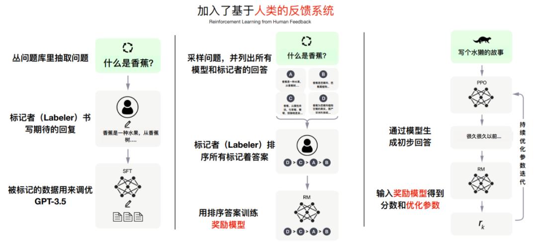虽然只是中间产品,但是ChatGPT和InstructGPT对于OpenAI的意义却不容忽视。因为这两个语言模型的能力提升的逻辑和之前完全不同,不是单纯地通过增加算力来迭代升级,而是通过引入一种叫RLHF(Reinforcement Learning from Human Feedback,从人类反馈中强化学习)的训练方式来让模型更好地完成指令。