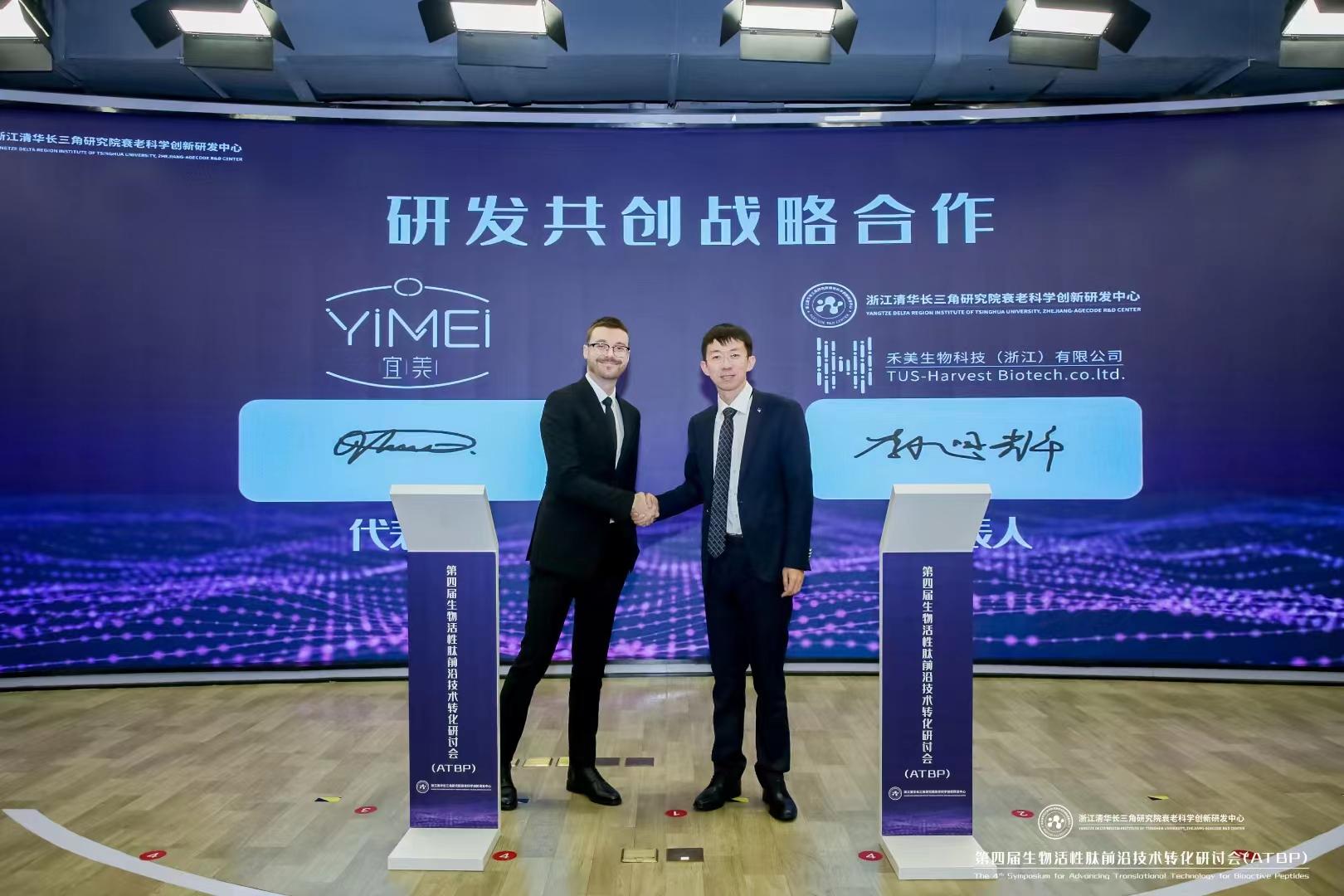 集团全球创新研发总裁James Knight与清华长三角研究院科技创新部部长、衰老科学创新研发中心主任李旭辉博士