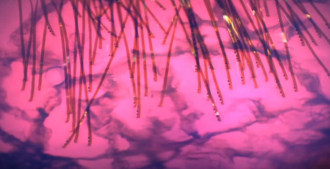 这些探针会插入大脑皮层,然后通过 1024 个通道进行双向通信,一边远程接收信号,一边发出电信号刺激神经细胞。
