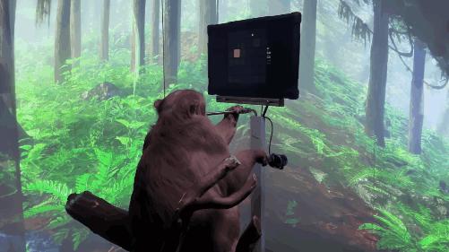 当时是在猴子的颅内植入 N1 装置,然后让猴子判断屏幕上的高亮部位,再控制光标移动到相应位置。
