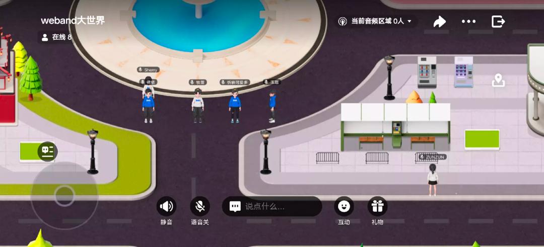 用户还可以在“Weband大世界”里,逛街并结识好友, 此外,还能够在"大世界"里发语音、文字,以及送礼物等。