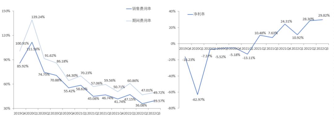 费用方面,Q3单季总费用支出同比有所增加,主要系平台补贴导致的销售费用支出增加。同时,在收入大幅增长下,期间费用率同比有明显下降。