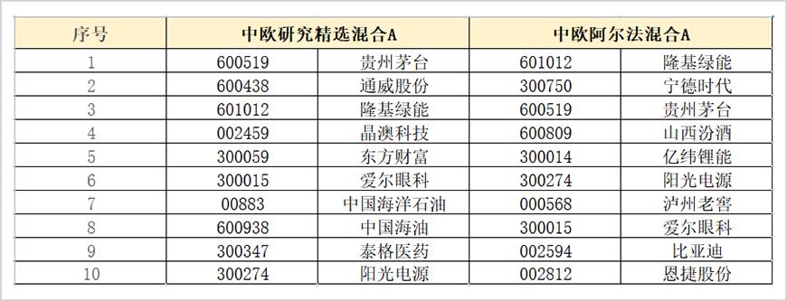 中欧阿尔法顾名思义,侧重为投资者获取更高的市场收益;而中欧研究精选则更偏向于稳健。细看两只基金持仓,虽然定位不同,但却异曲同工,甚至有“大杂烩”之感。