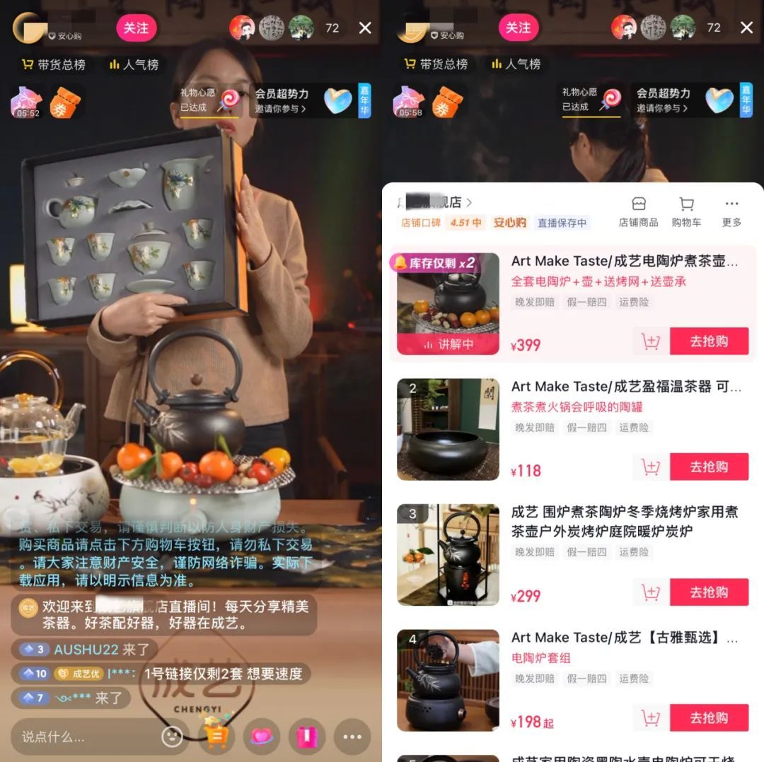 在抖音、淘宝等平台,凭借人们对围炉煮茶的关注,商家或是迅速推出围炉煮茶周边产品提高销量,或是借围炉煮茶的热度吸引粉丝流量。