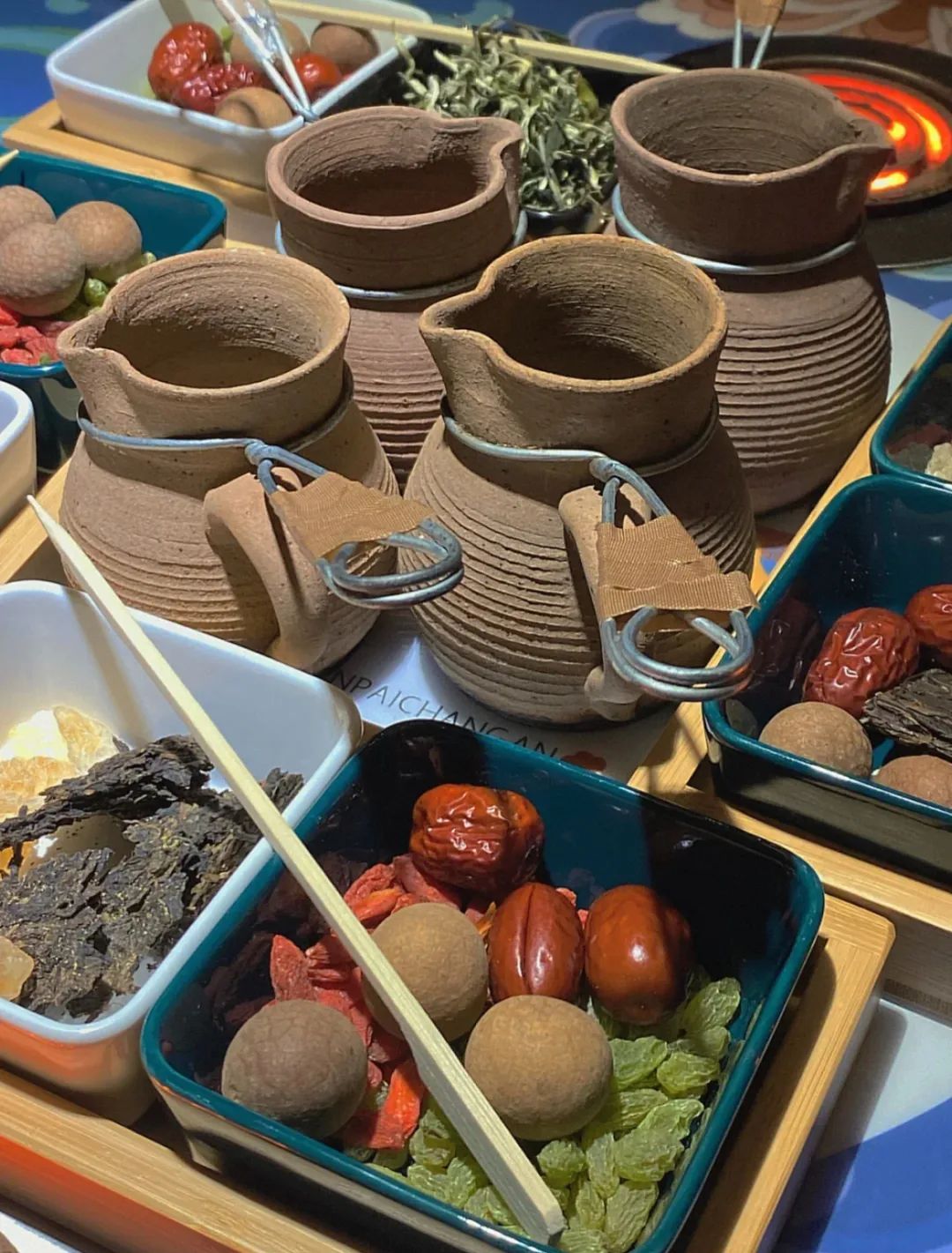 另外,从所需材料可以看出,围炉煮茶所需成本并不高,比起在线下店的花销,自己在家准备材料成本更低,食材的品质也更有保证。也不用局限于店里提供的几样食材,自己可以选择任何喜欢的,可以是红薯板栗,也可以是火腿、肉串,茶水里面也可以按照自己的心意添加东西,岂不美哉!