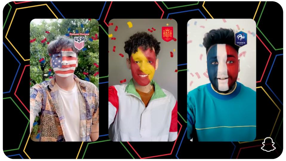 同时根据不同时期的流行趋势,Snapchat会有新的滤镜进行不断更新。比如说现在世界杯期间,就有许多关于足球和世界杯的滤镜。