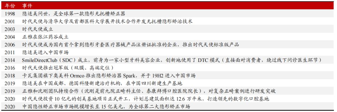 之所以我们多次提到隐形矫治在美国的发展情况,是因为这项技术正是起源于美国。1998年,美国医疗器械公司艾利科技推出了第一款隐形矫治器隐适美,并在2000年获得FDA注册。首款产品获批的第二年,艾利科技就登陆美国资本市场,借助于专利优势和资本优势,“隐适美”很快垄断了美国的隐形矫治行业。