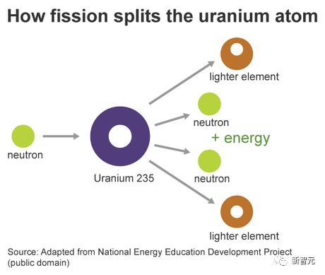 这种能量将会以热能和辐射的形式释放,其中热能被用来将水加热成蒸汽,进而使涡轮机转动并驱动发电机发电。