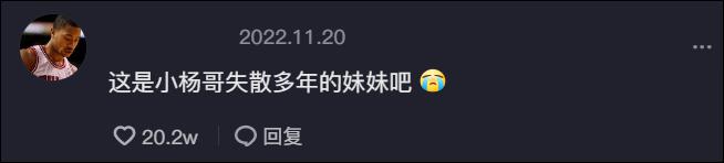与此同时,小叮当的一家无论是在账号定位、人设、拍摄手法等各方面,都显得与让网友与疯狂小杨哥十分相似。甚至还有网友认为,妹妹笑起来的样子与小杨哥有些相像,在视频底下,一条“这是小杨哥失散多年的妹妹吗”评论点赞高达20.2万。