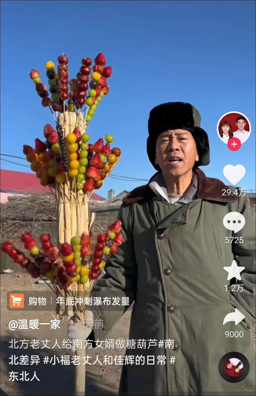 地域文化的差异形成的强烈反差感,让两人意外解锁了流量密码。该视频在抖音上获赞148.8万,成为“温暖一家”第一条点赞破百万的作品。