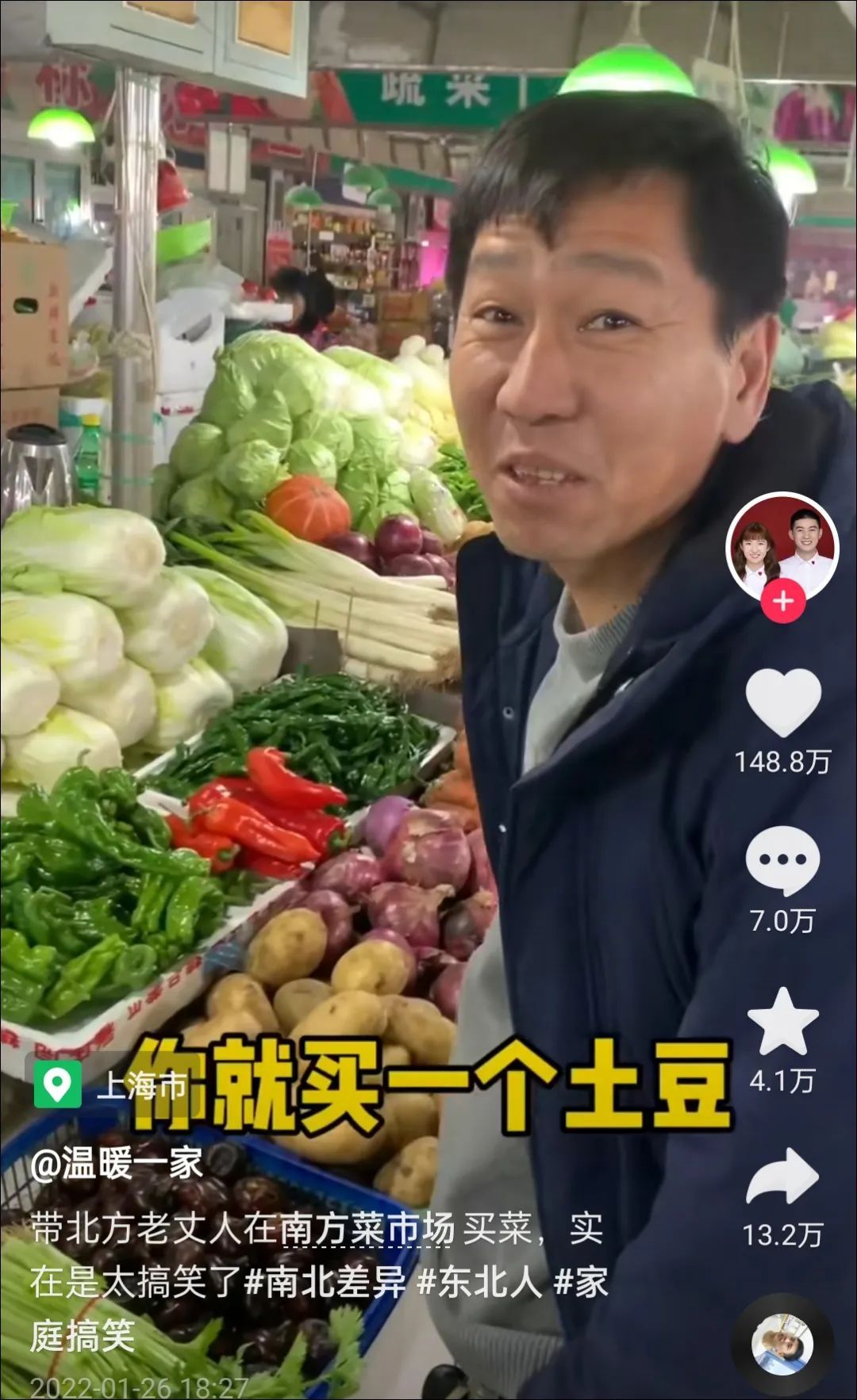 不过,温暖一家最初的几条作品表现并不亮眼。温暖一家的走红,来源于今年1月26日发布的《带北方老丈人在南方菜市场买菜》。视频中,对于南方菜市场大葱可以只买一根、土豆不仅能削皮还能切丝感到十分震惊,直呼“你干脆让老板再给你炒了得了”。