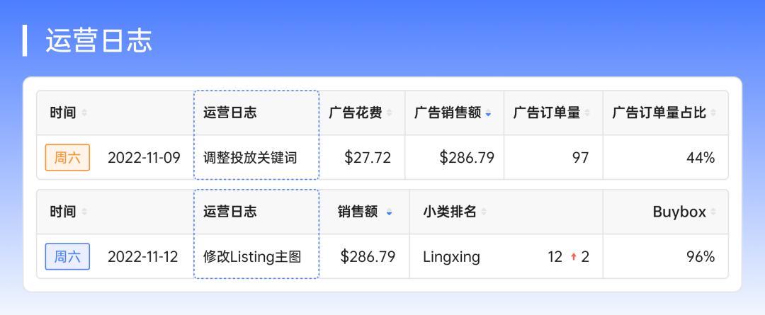 为使产品更好地销售,卖家会经常调整刊登、广告、秒杀活动等策略,并将运营动作记录下来,以便后期复盘效果。