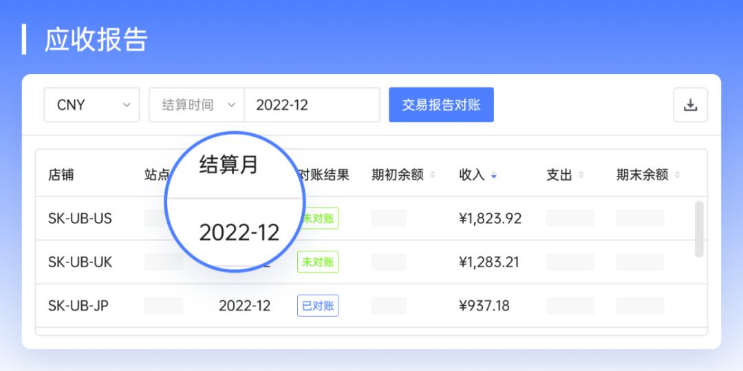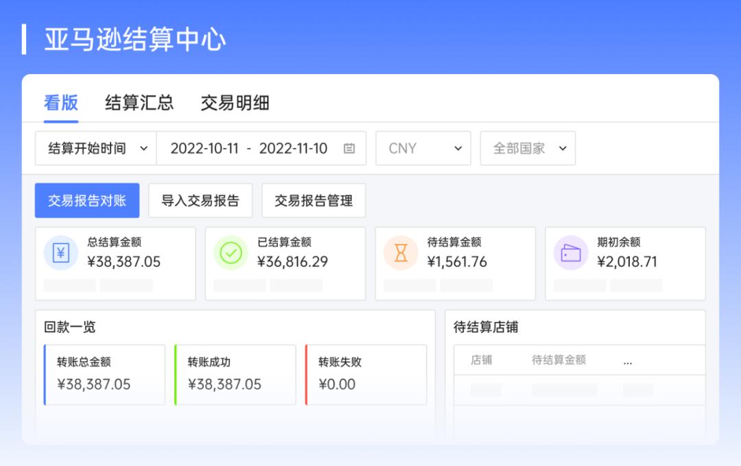 众所周知的是亚马逊的结算一般是以14天为一个周期,不是按自然月进行结算,亚马逊卖家可以据此快速了解每个月的期初余额、收入、支出、退款、转账金额,无需投入大量时间手动整理店铺多个账单,对跨月的账单再分割。