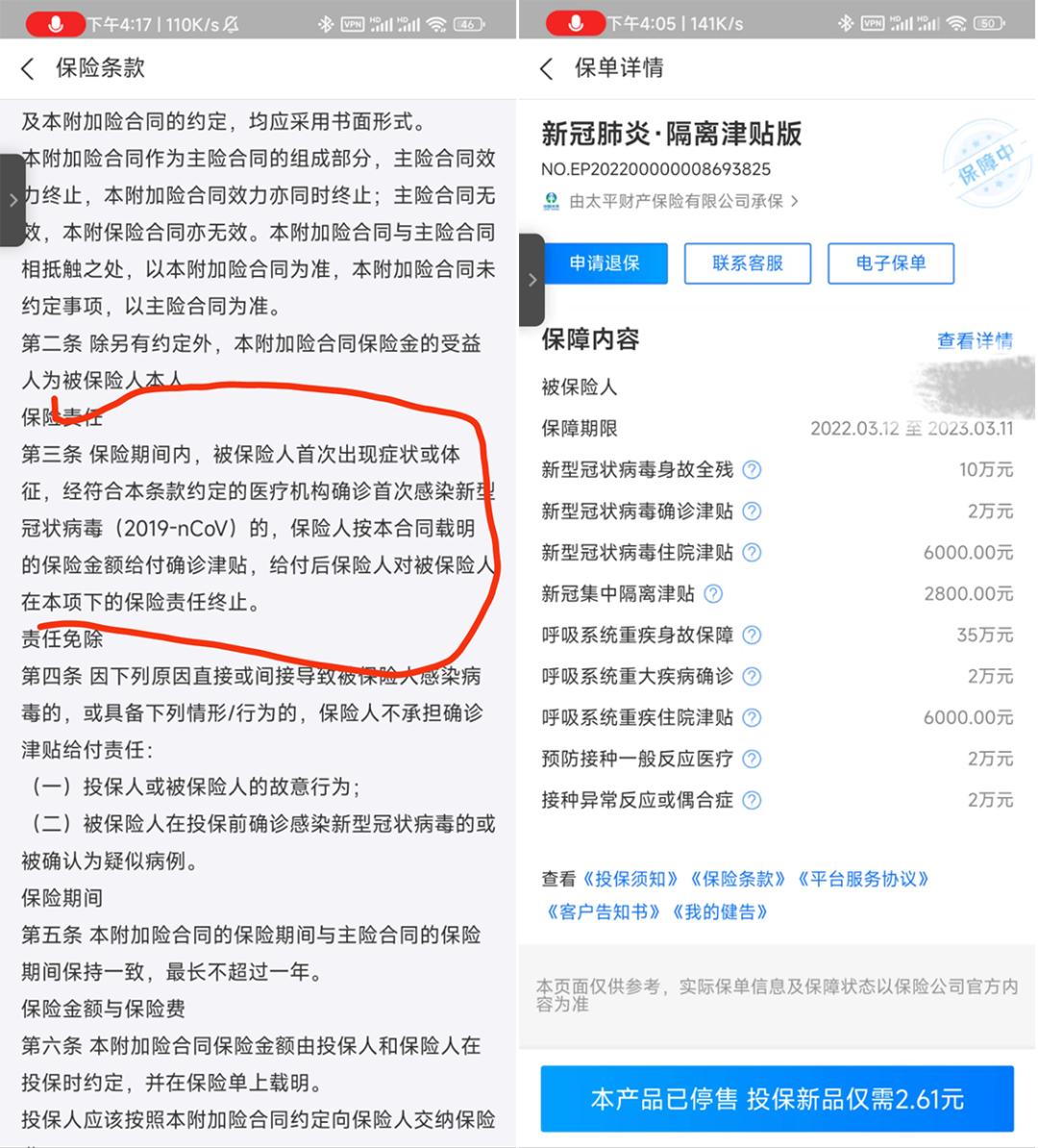 然而近期,随着优化疫情防控“二十条”“新十条”等政策陆续公布,人们生活逐渐回归便利,新冠肺炎的感染风险升高。保险公司也紧急下架多款与新冠疫情相关的产品。