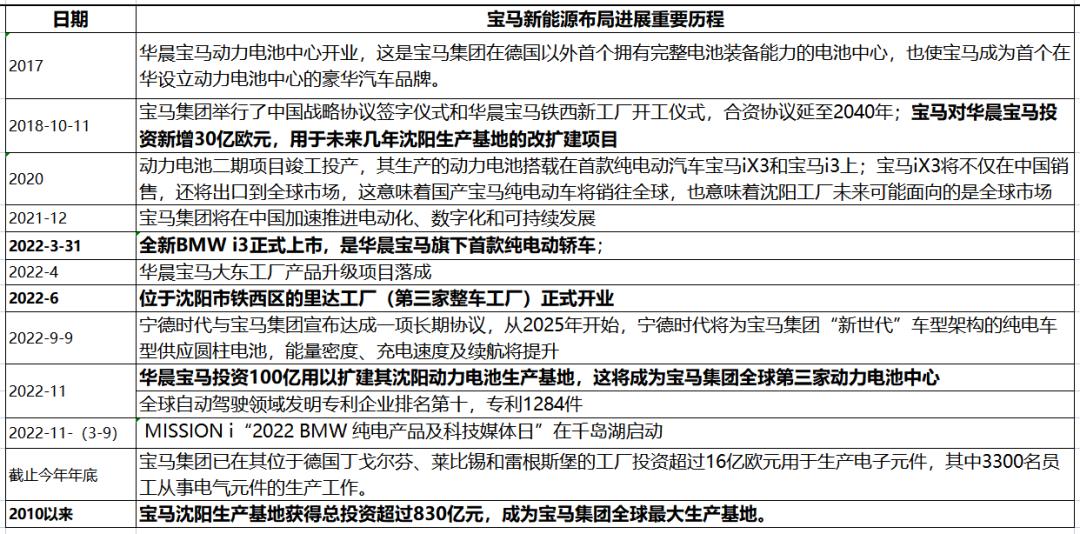 2018年10月,宝马集团举办了中国战略协议签字仪式与华晨宝马铁西新工厂开工仪式,与此同时,集团对华晨宝马还新增30亿欧元的投资,用于未来几年在沈阳生产基地的改扩建项目。
