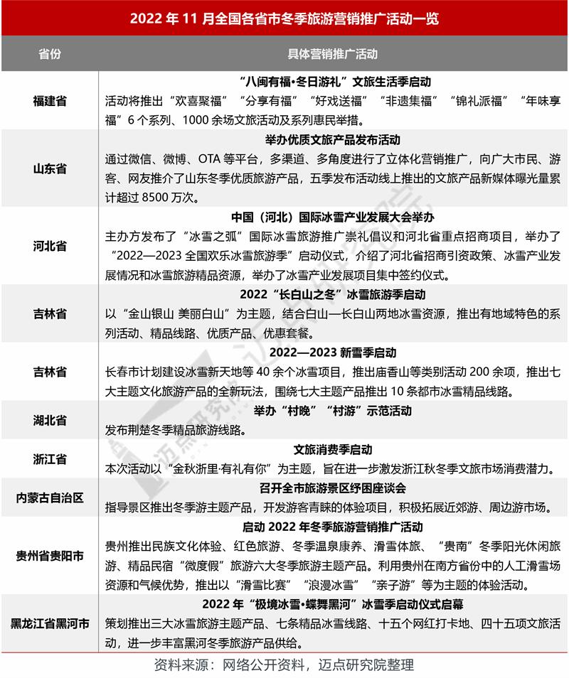 冰雪旅游无疑是11月市场关注焦点。各省市积极举办推介会,开展冬季旅游营销推广活动,为冰雪旅游项目“开疆拓土”。冬奥会红利、市场需求、优质冰雪资源等多重因素叠加,促推黑龙江在冰雪旅游产业加码布局,通过深入贵州省、江西省等进行冬季旅游推介会,联合开展资源共享、市场共推、客源互送,努力资源转化,将资源优势转化为经济优势。