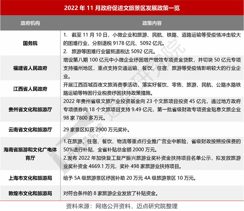 2.纾困政策盘点:11月政府高站位“真金白银”再助文旅企业纾困