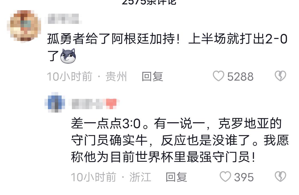 有网友调侃道:“《孤勇者》给了阿根廷加持,所以上半场打出了 2 : 0 的战绩。”